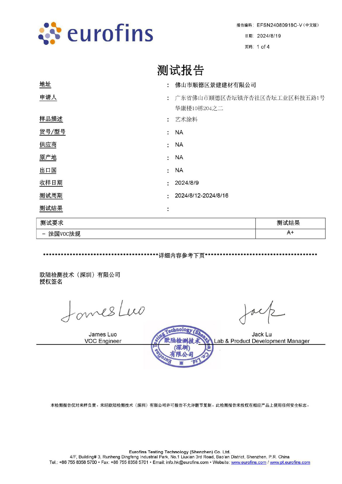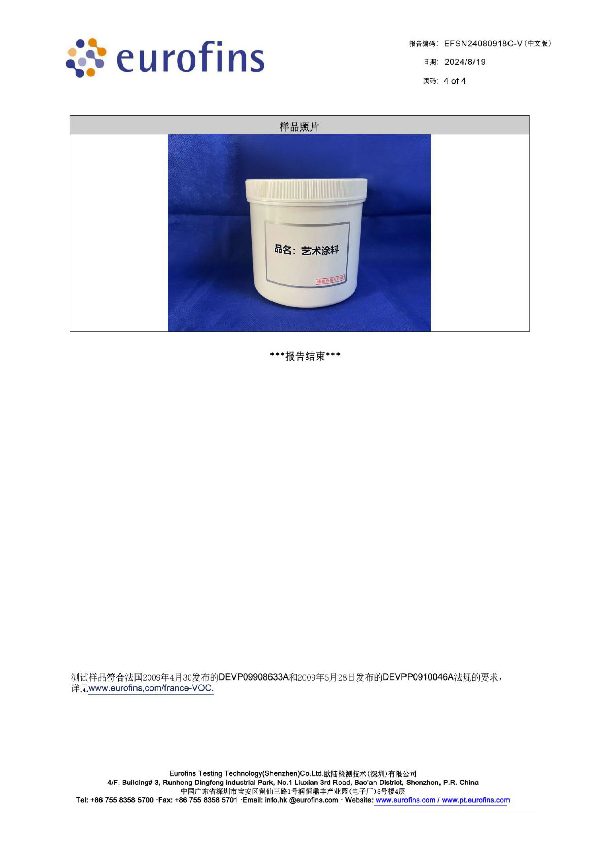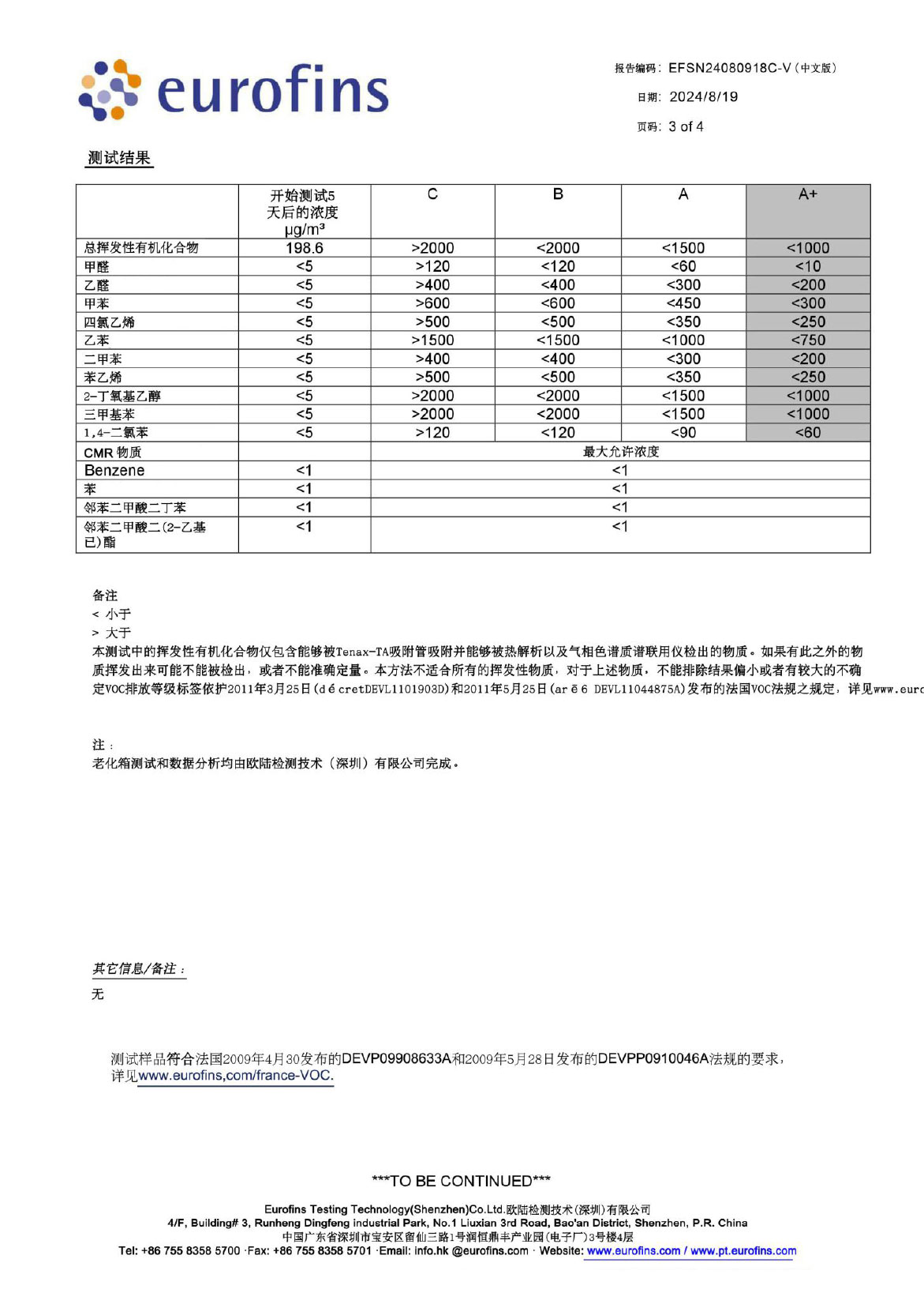 法国VOC检测标准A+认证